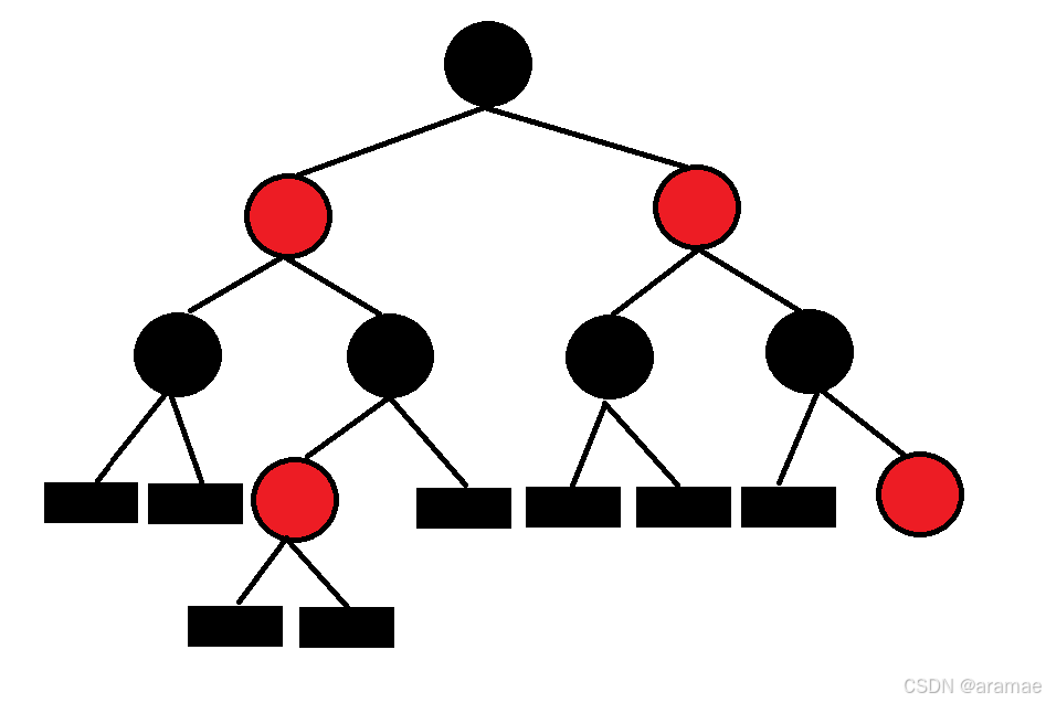 - 3**.所有叶子节点(NIL节点)都是黑色的**(在实现中,我们通常把空指针视为黑色的NIL节点)