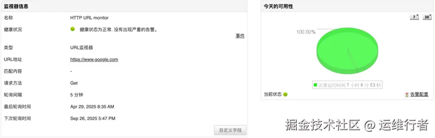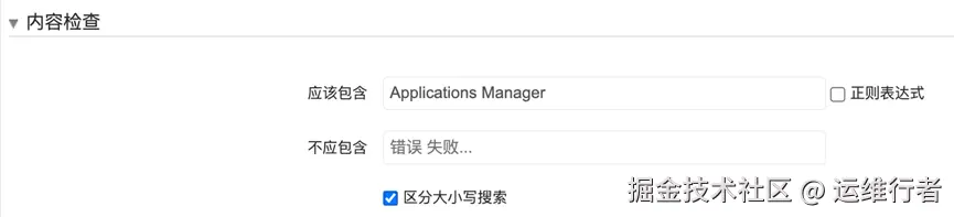 在HTTP 配置检查均正常时,可以通过网站内容检查来识别"假运行"状态。支持正则表达式