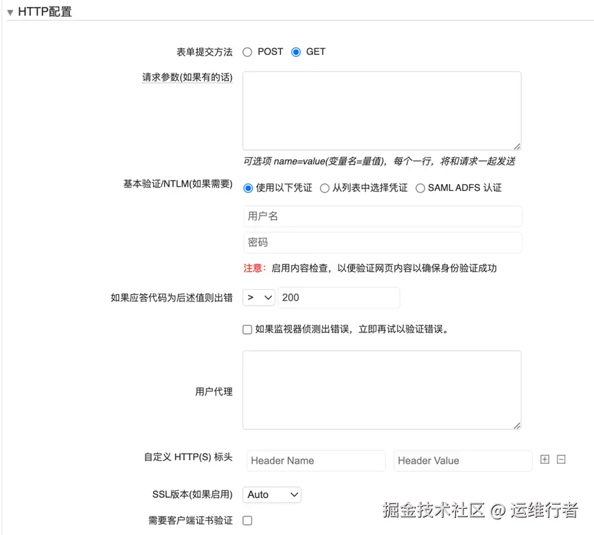 支持 POST/GET 方式。可以设置基于状态码的阈值告警。例如设置>200都作为告警触发,比如这次知乎响应状态码为 525,平台会立刻发出可用性 down 的告警;支持验证以及添加请求参数(可选)等。