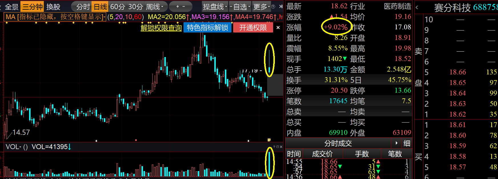 688758赛分科技 阴上阴形态 洗盘上涨?