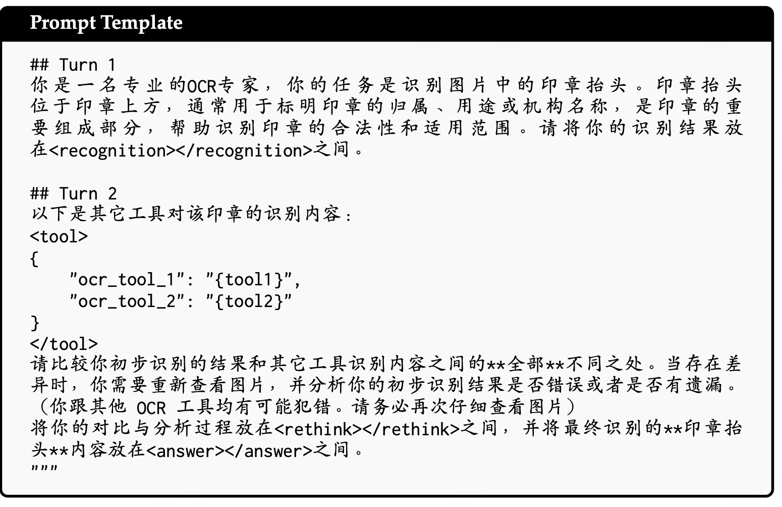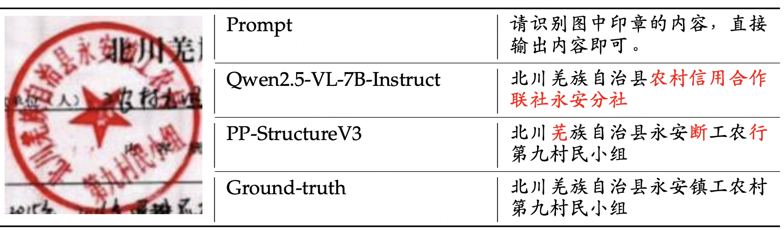 参考工具:PP-StructureV3(专家OCR模型,低幻觉)、Qwen-VL-OCR(专家VLM,适配印章文本识别)。