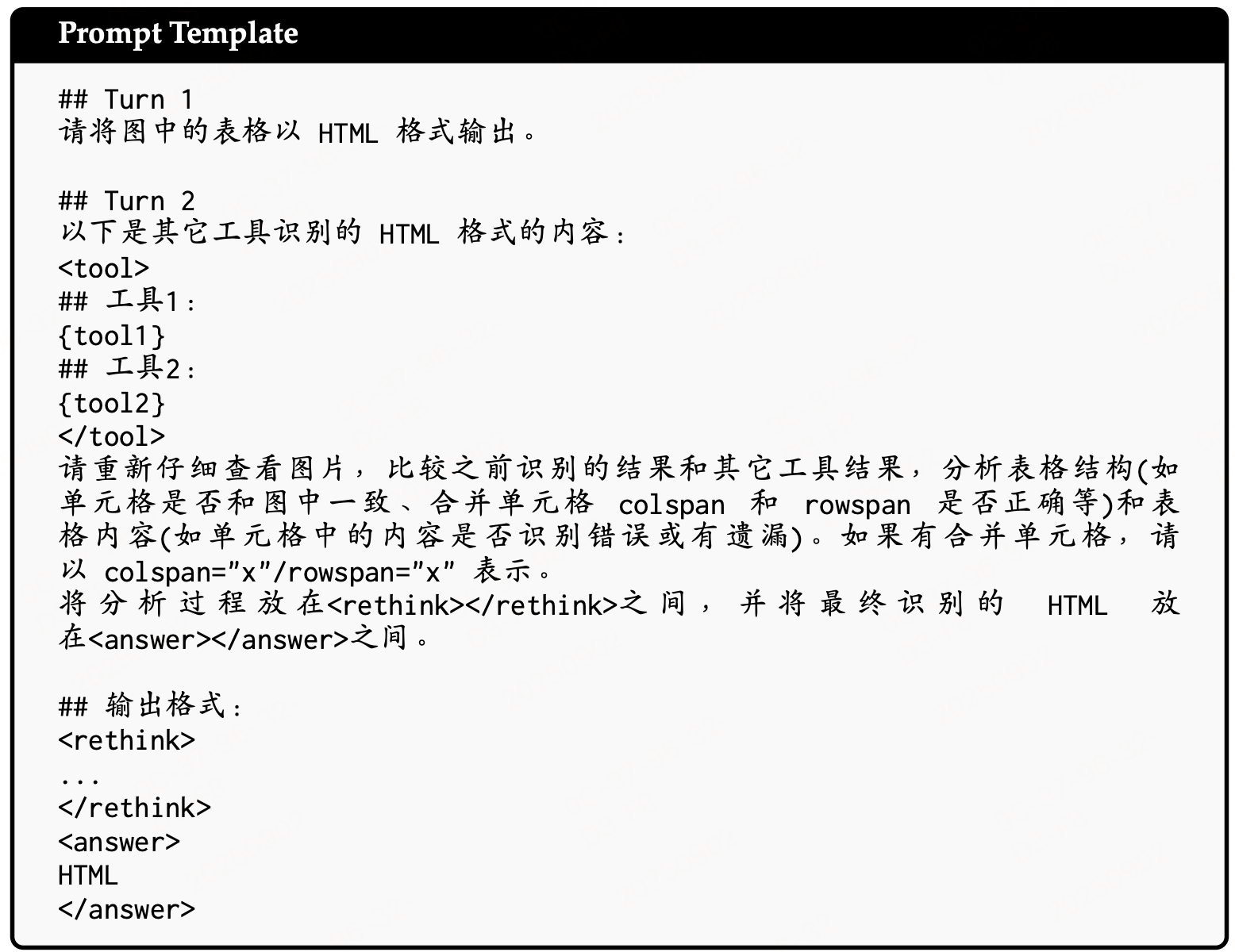 - 准确率奖励:(1)印章:完全匹配→1.0,否则 0.0;(2)表格:奖励 = TEDS(结构 + 内容相似度);(3)公式:奖励 = CDM(字符匹配度),CDM=1.0 时额外加 0.5(鼓励完美结果)。