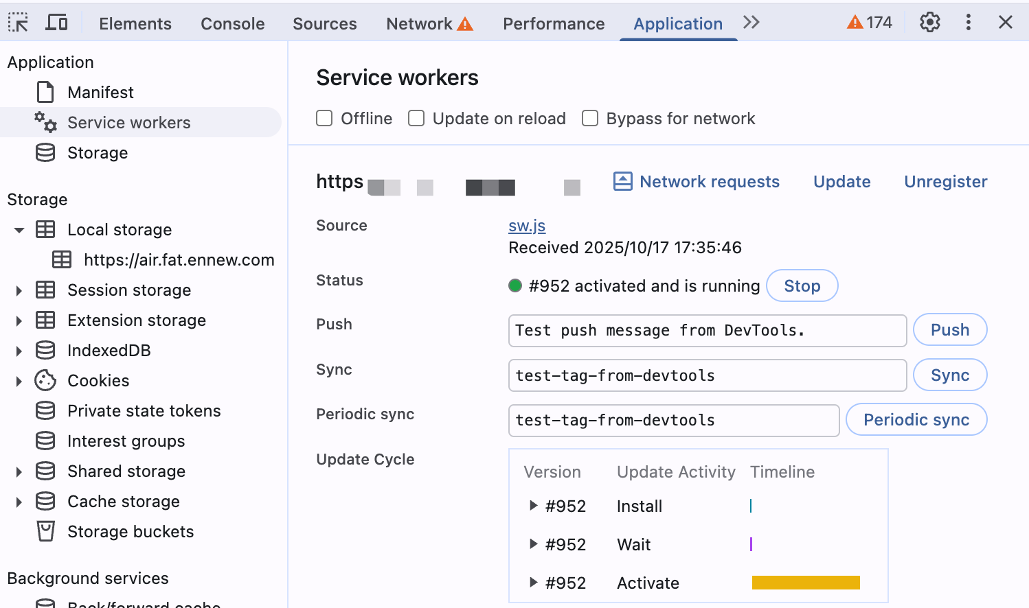 在 Application 中也能查看对应的 Service Worker 是否注册成功