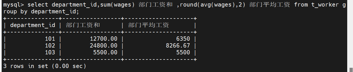 (14)、统计各部门的工资和平均工资并保留2位小数