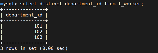(2)、查询所有职工所属部门的部门号,不显示重复的部门号。