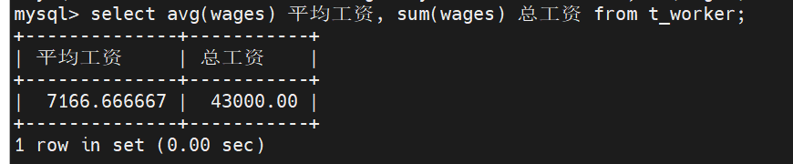 在t_worker表中,计算平均工资、总工资,最后输出。