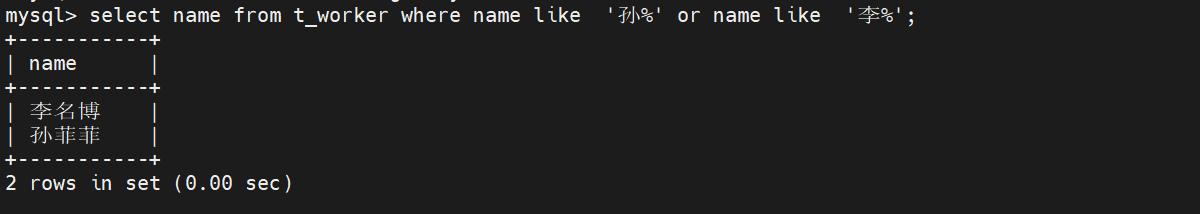 在t_worker表中,先查找孙姓和李姓的人,最后输出。