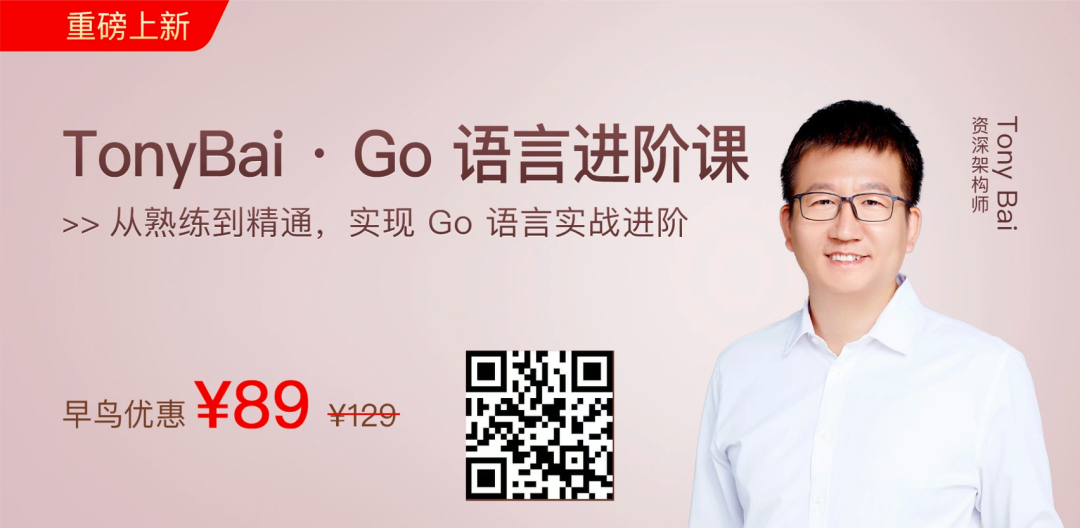 我的全新极客时间专栏 《Tony Bai·Go语言进阶课》 就是为这样的你量身打造!30+讲硬核内容,带你夯实语法认知,提升设计思维,锻造工程实践能力,更有实战项目串讲。