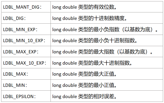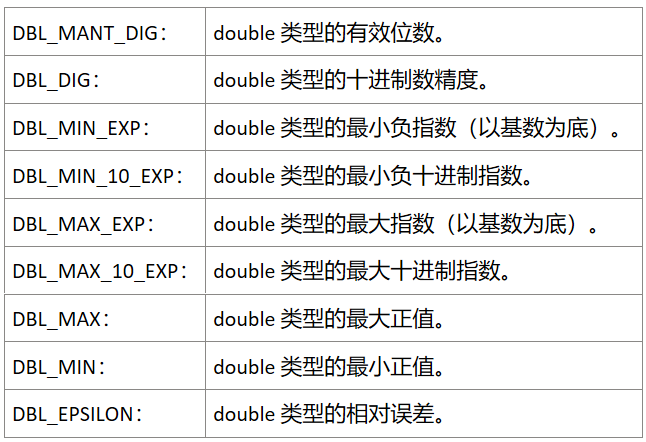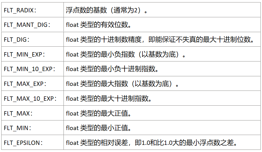 <float.h> 提供了一组宏,用于描述浮点数类型的特性和限制。通过使用这些宏,我们可以编写更健壮的代码,处理与浮点数相关的边界情况和特殊情况。