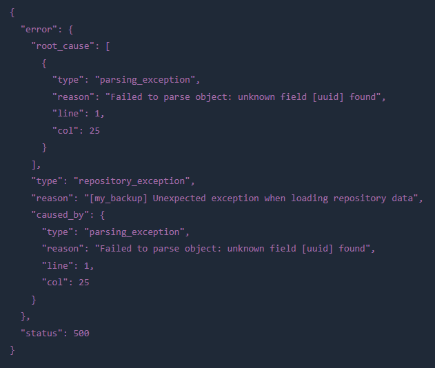 根本原因: Elasticsearch 和 Easysearch 的快照元数据格式存在差异,uuid