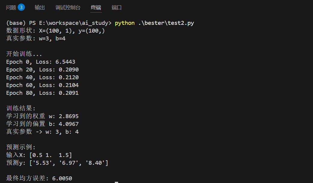 y = true_b + true_w * X + np.random.randn(100, 1) * 0.5 # 添加噪声