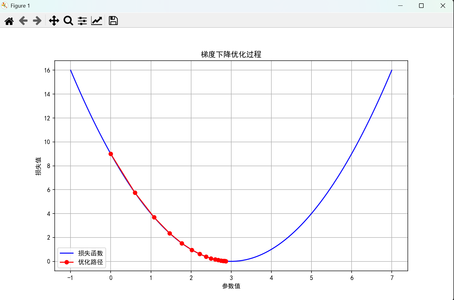 print("梯度下降过程:")