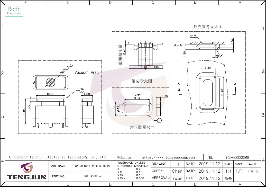 从市场价值来看,该产品不仅满足消费电子的小型化、多功能需求,更拓展了Type-C连接器在工业、户外、医疗等高端领域的应用,为设备厂商提供了"高可靠性、高适配性"的传输解决方案。未来,随着设备对"防水、稳定、小型化"的需求不断提升,JN16-BPS002-A有望成为防水Type-C连接器领域的标杆产品,推动更多场景实现"无顾虑的信号与电力传输"。