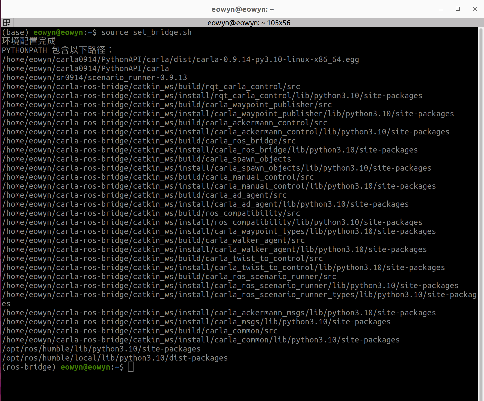 conda activate ros-bridge # 激活虚拟环境