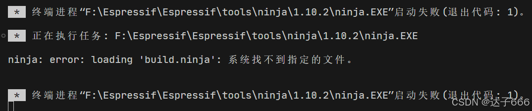 * 终端进程"F:\Espressif\Espressif\tools\ninja\1.10.2\ninja.EXE"启动失败(退出代码: 1)。