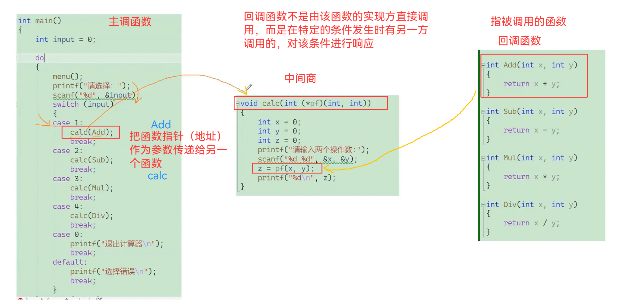 void calc(int(*pf)(int, int))