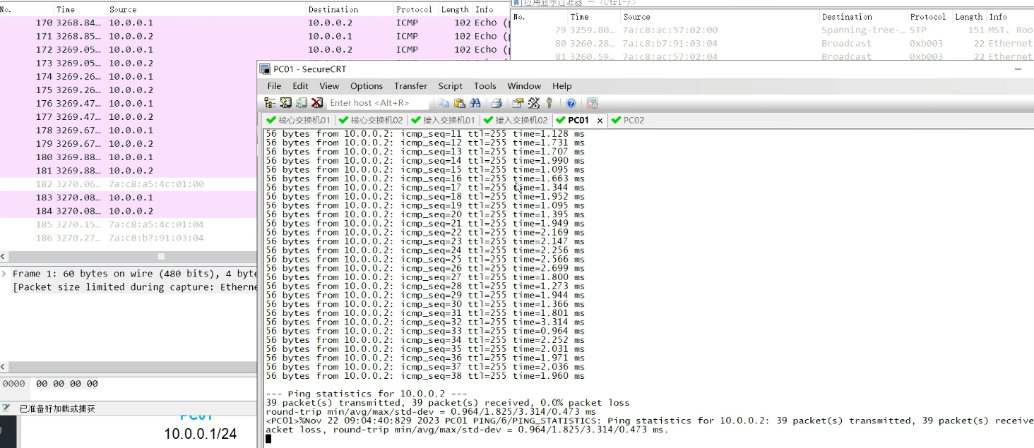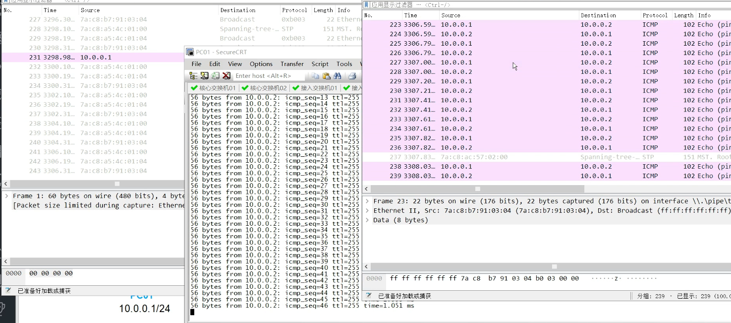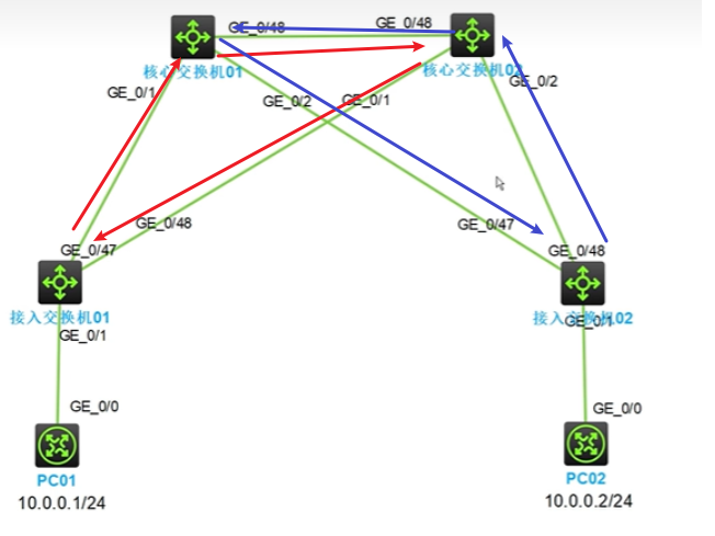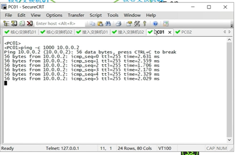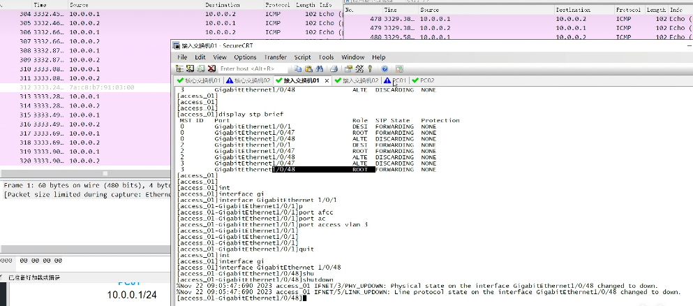 PC1 ping PC2---47号端口有数据包,48号没有