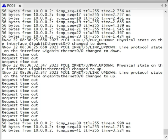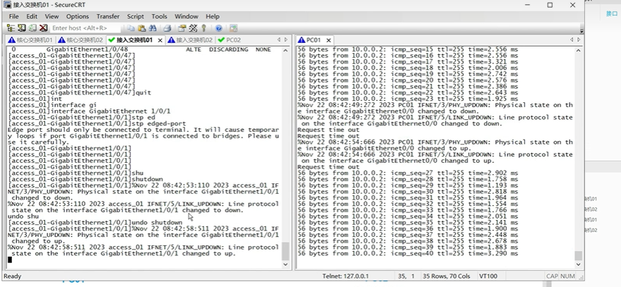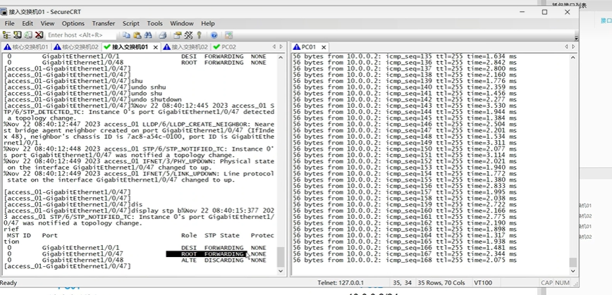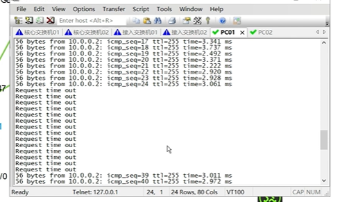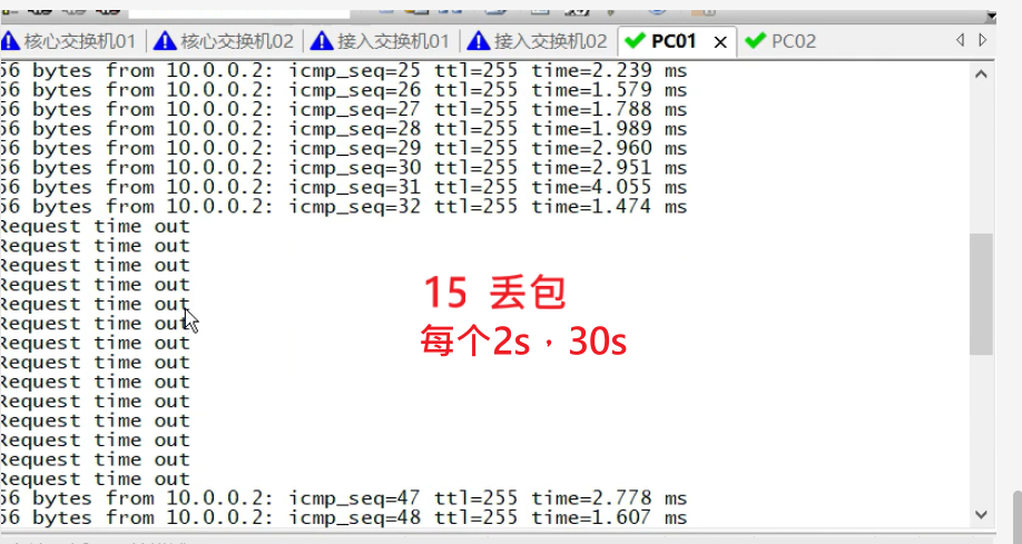 又丢了15个包。30s重新进行端口角色变化,网络收敛