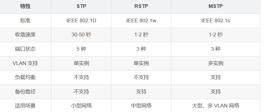 四. STP、RSTP 和 MSTP 的核心区别