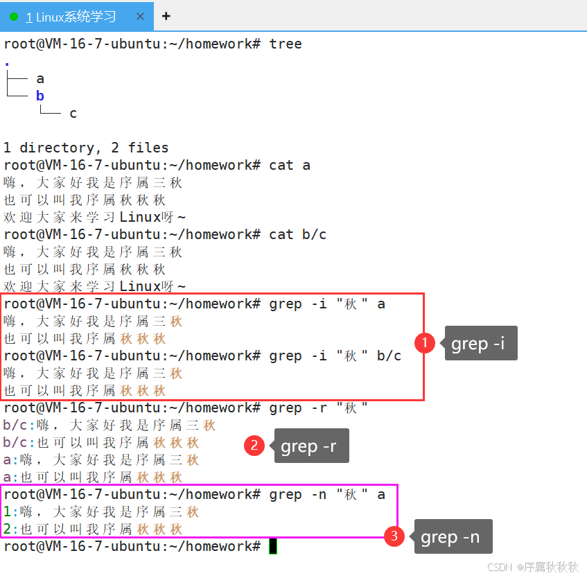 :显示匹配行的行号-r