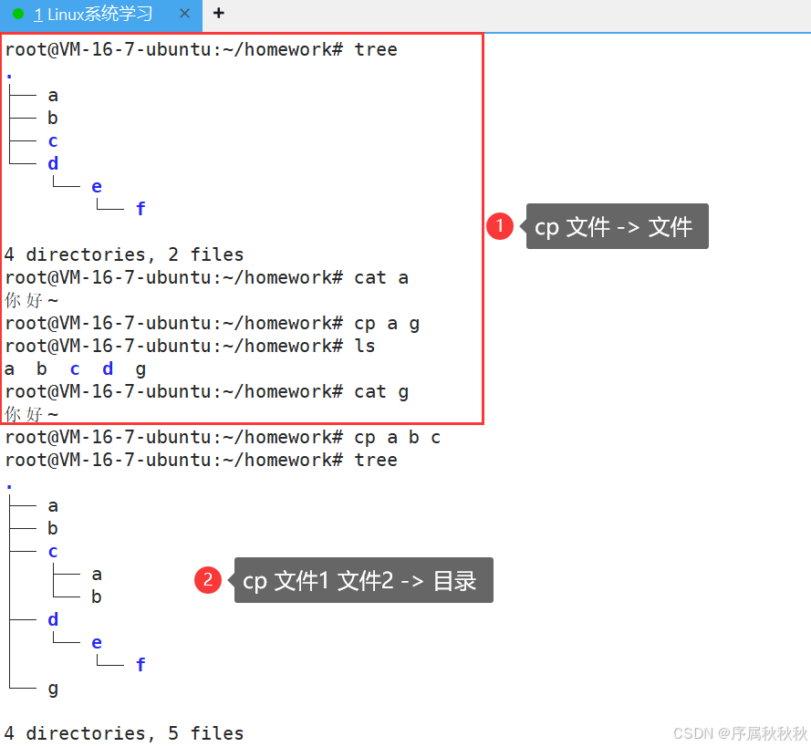 目录,前两个是源文件,最后一个是目标目录)- 路径格式 :参数可以是绝对路径(如:/usr/local)或相对路径(如:./docs,表示当前目录下的 docs 文件夹)