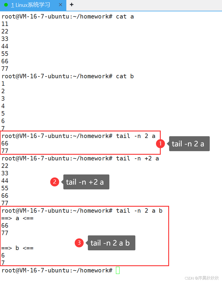 核心作用:显示文件的末尾部分内容,默认显示最后 10 行,常用于查看日志文件的最新记录或文件的结尾信息
