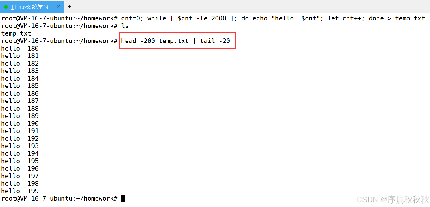 命令配合,可灵活提取文件中间部分的内容(如:head -n 20 file.txt | tail -n 10