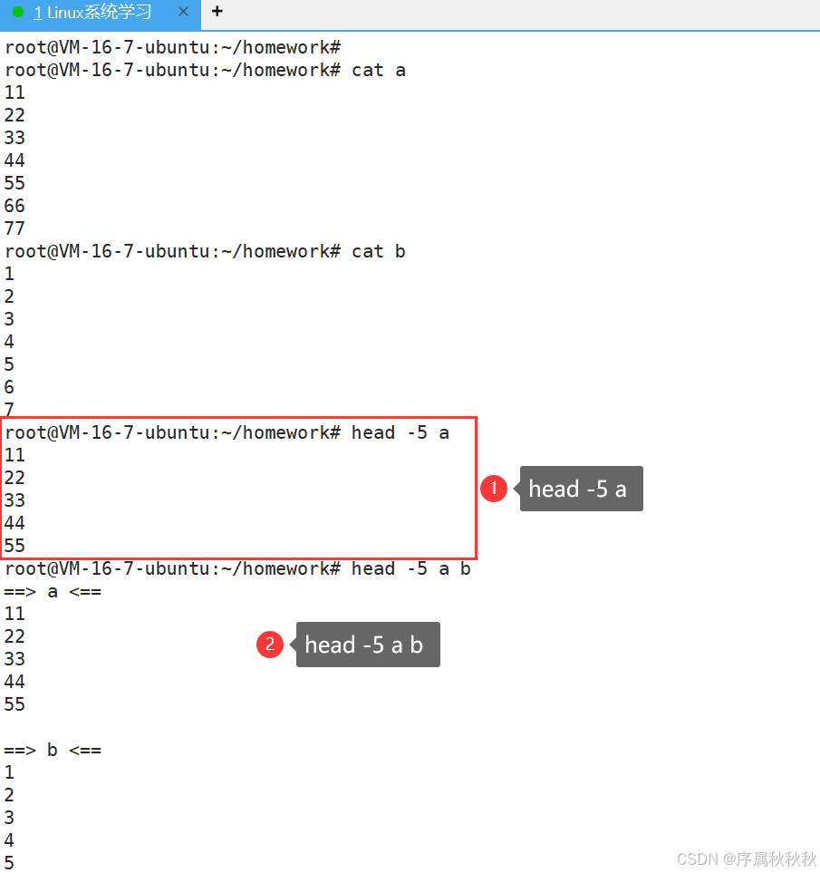 :同时显示多个文件的开头部分,每个文件内容前会标注文件名