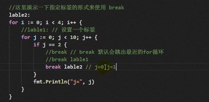 - break出现在多层嵌套的语句块中时,可以通过标签指明要种植的是那一层语句块
