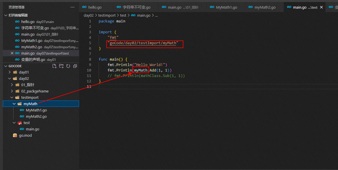 import引入包时从$GOPATH的src下开始,不用带src,编译器会自动从src下开始