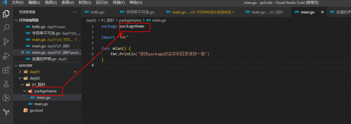 go的每一个文件都属于一个包,go是以包的形式来管理文件和项目结构。
