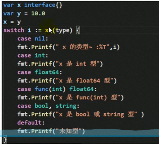 Type switch:switch语句还可以被用于type-switch来判断某个interface变量中实际指向的变量类型