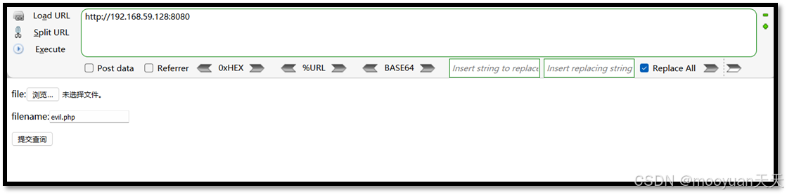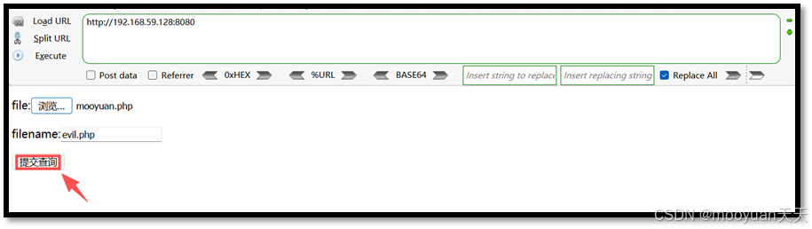 构建脚本URL地址,脚本名称为mooyuan.php%0a,脚本在网址根目录,故而URL如下所示。