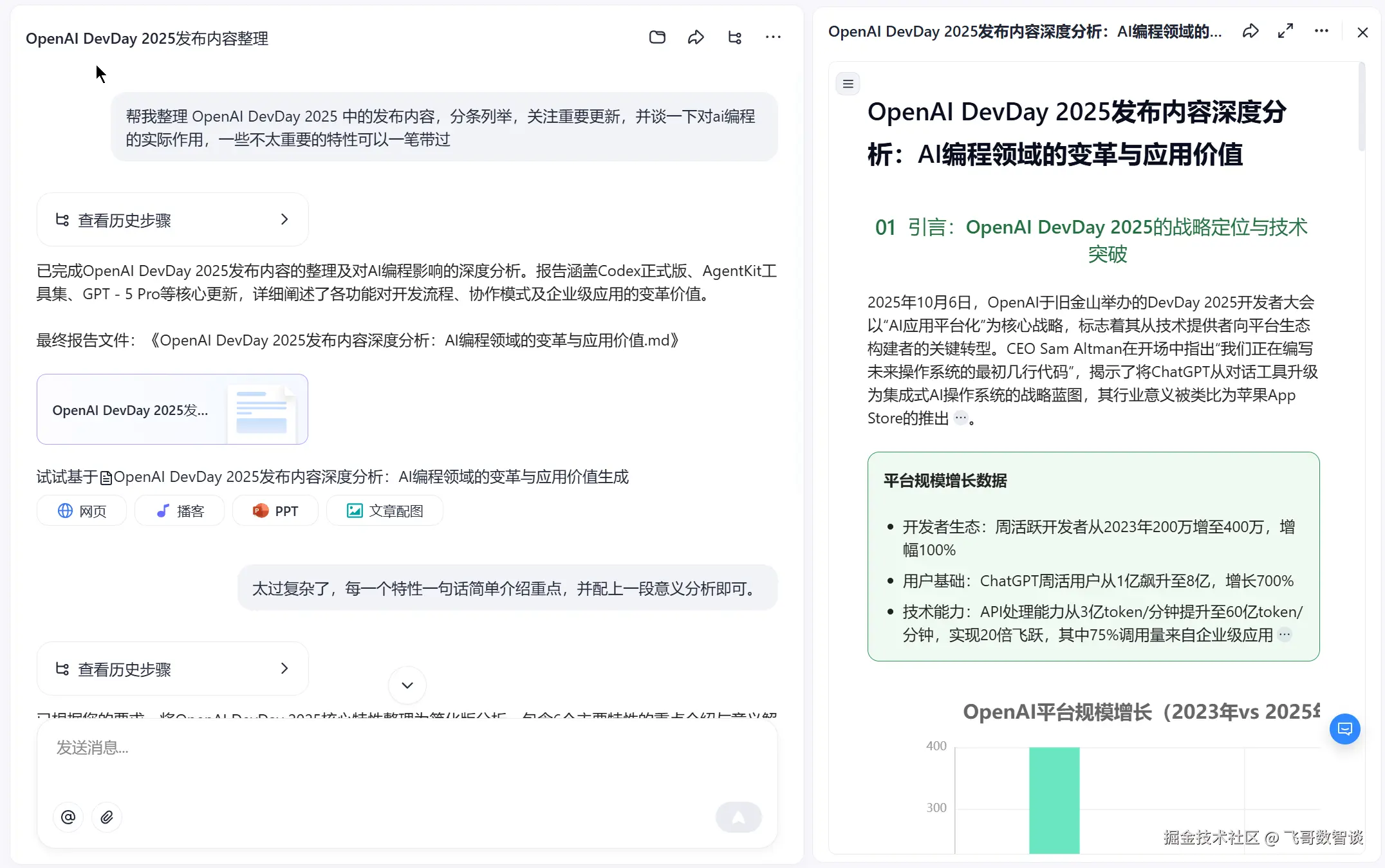 的时候,我没有赶上直播,但又想了解具体内容,于是,我就在"扣子空间"发送了一条指令: