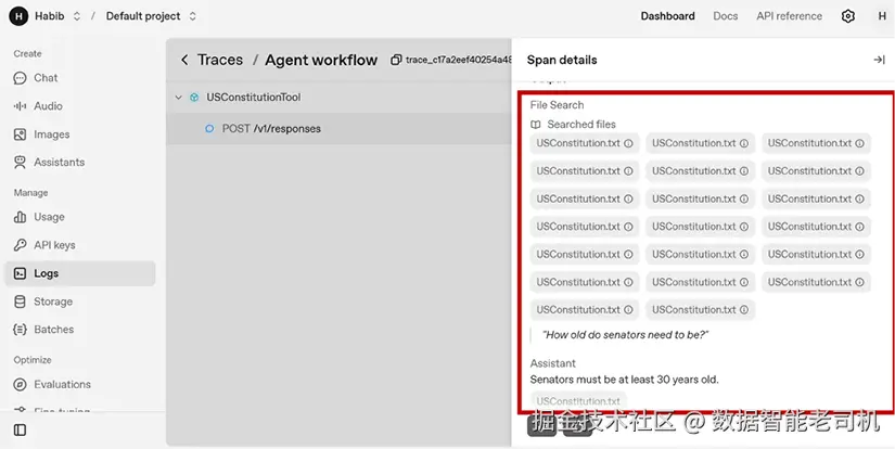 你还能在 OpenAI Dashboard 的 Traces 模块查看本次检索返回的所有 chunk: