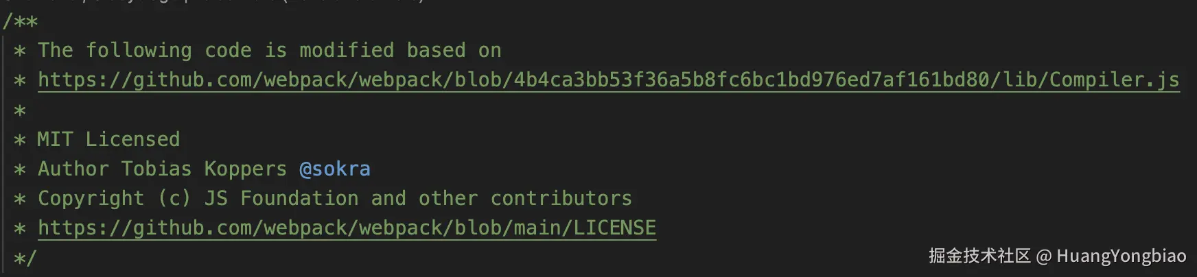 Rspack 的初始化阶段的代码和 webpack 初始化的代码非常相似,甚至类、函数的命名都是一样。Rspack 很多 TypeScript 文件头部都有以下图中的这么一段注释,说明这些代码是直接基于 webpack 源码改写的。如果你看过 webpack 的源码,那么理解 Rspack 的初始化过程会非常轻松。