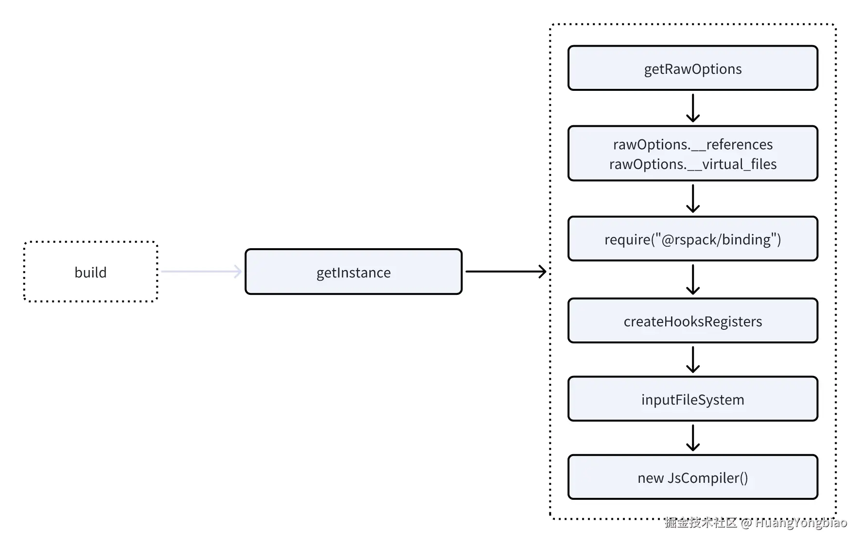 而正是这个桥接阶段 ,让 Rspack 能够通过 JavaScript 调用 Rust 封装的 JsCompiler 方法来完成真正的核心编译,这也是 Rspack 能实现高性能打包的关键所在。