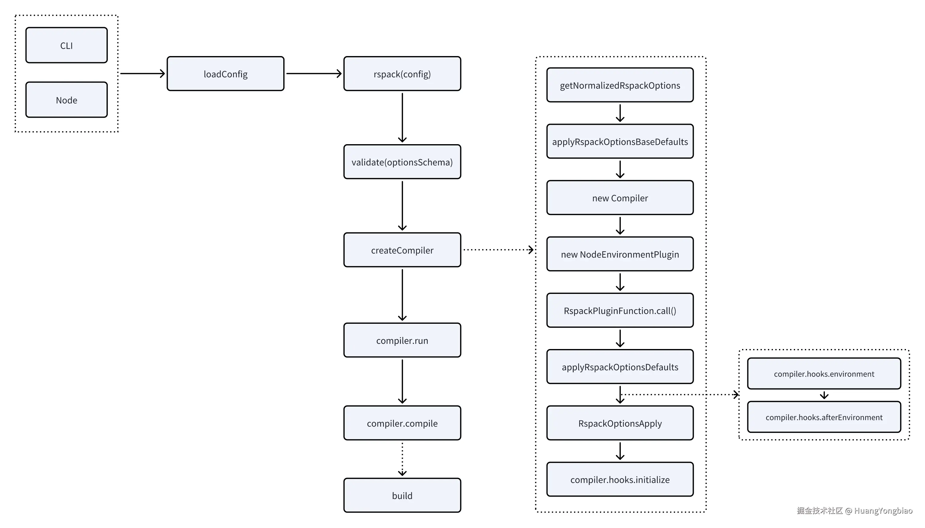 - loadConfig:负责加载并合并配置来源(CLI 参数、rspack.config.js、Node API 传参);