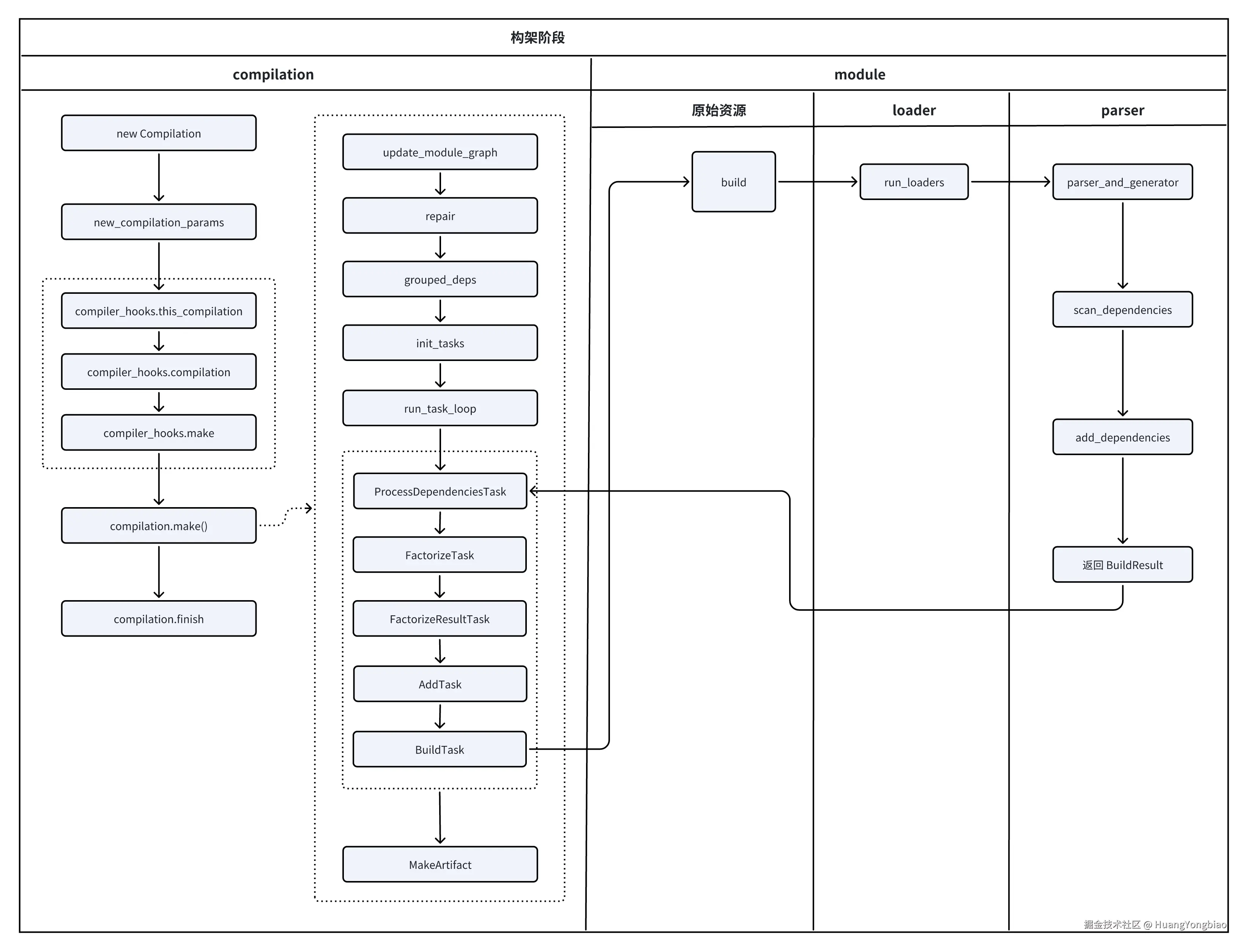 为了帮助你更系统地理解,我把整个初始化阶段拆分为两部分:配置解析阶段、Compiler 的创建与插件机制 。
