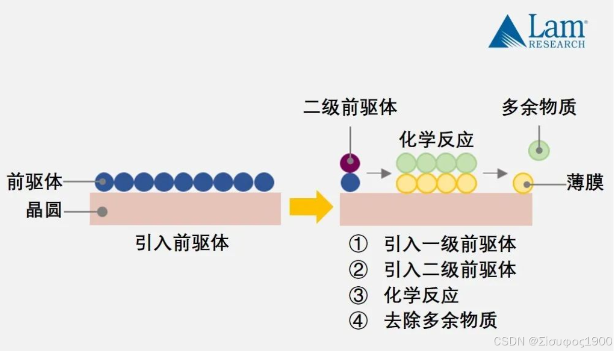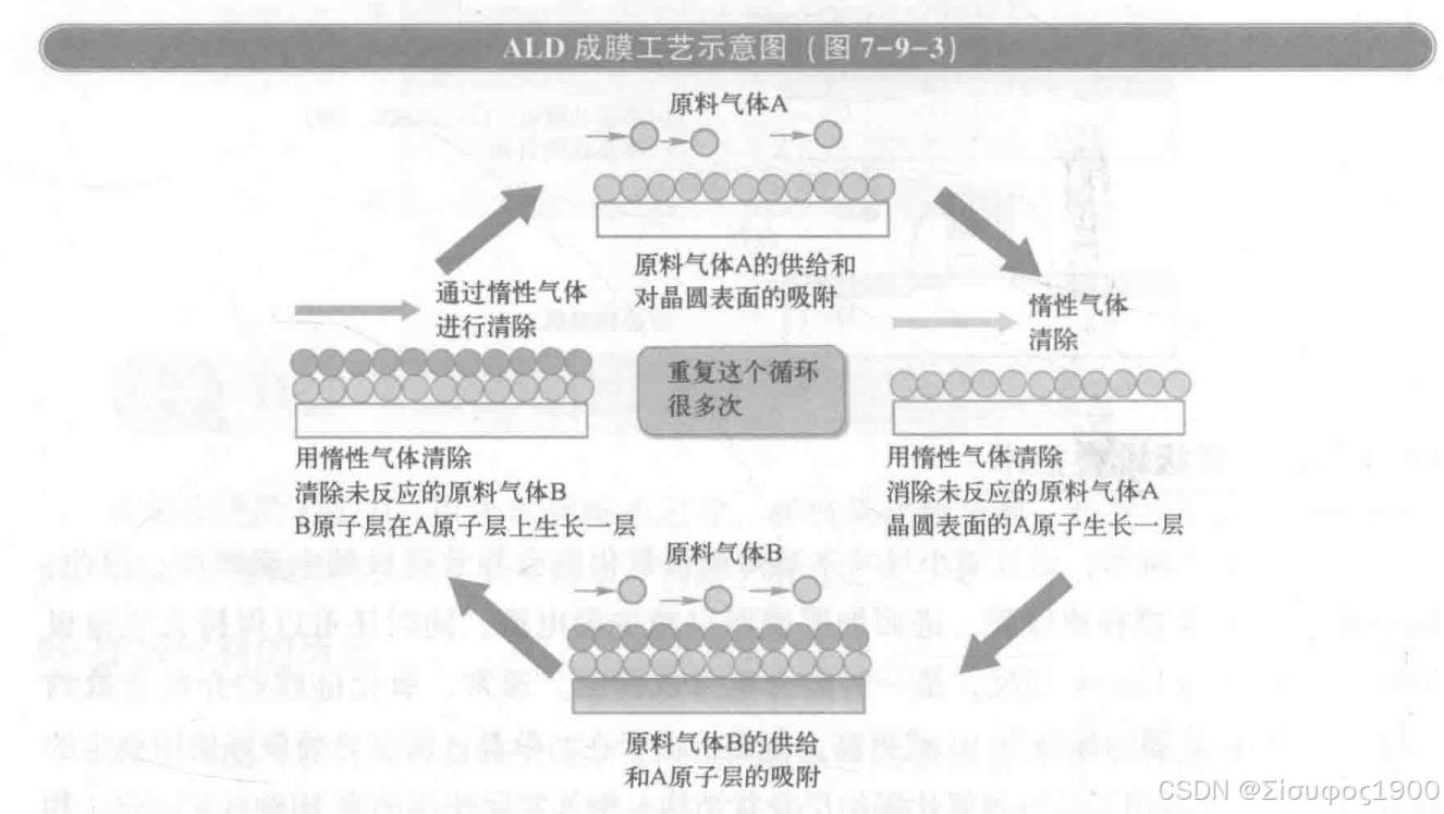 ALD 工艺主要通过重复沉积和清除(Purge)来生长薄膜。与之前描述的沉积方法最大的不同是,气体的供应比较独特。这是因为只要一次原料气体的供应量发生变化,ALD过程就不再起作用。