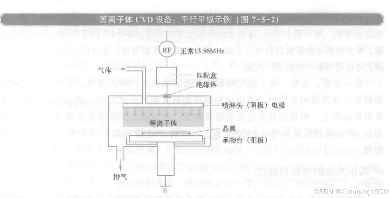 产生等离子体的方法不限于如图7-5-2所示的平行平板电容耦合型,也有使用ECR(Electron CyclotronResonance,电子回旋共振)放电产生高密度等离子体的方法