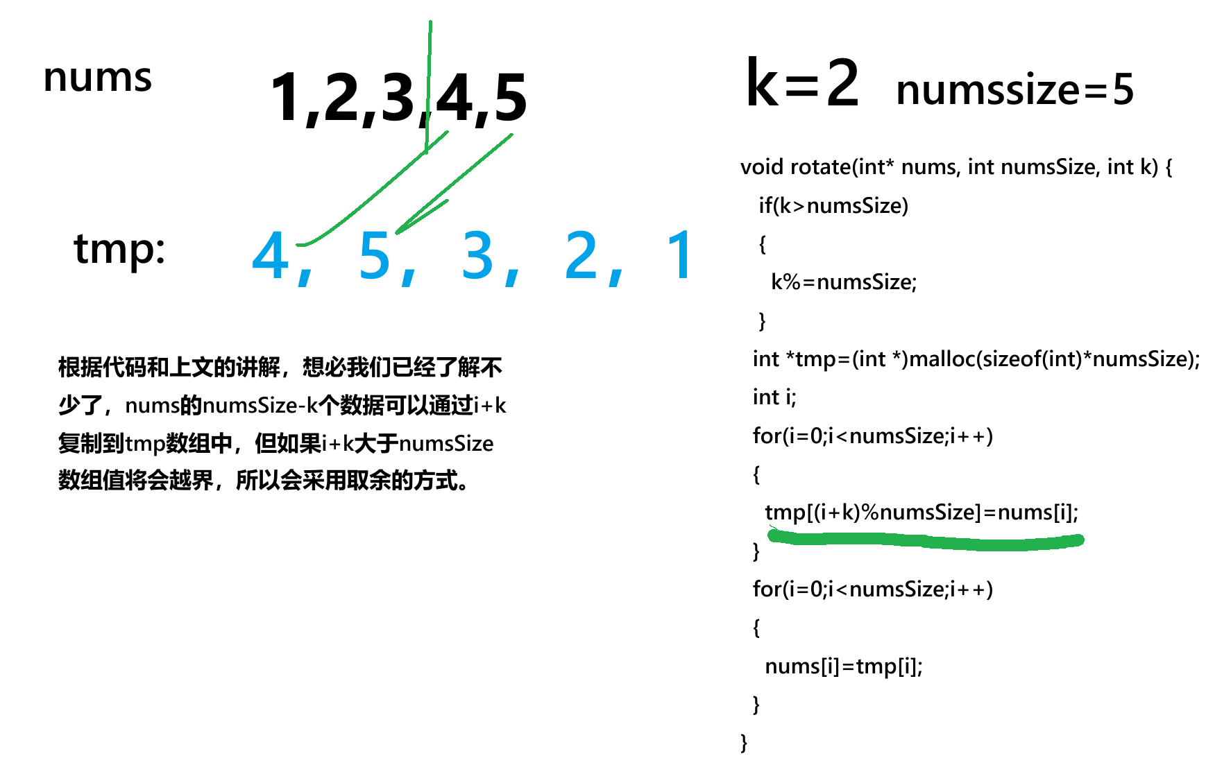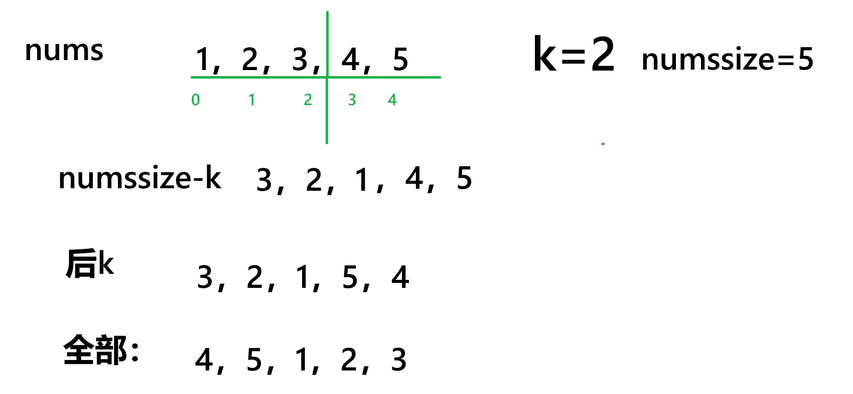 后调用该函数(如左旋 2 步 = 右旋 3 步,当numsSize=5