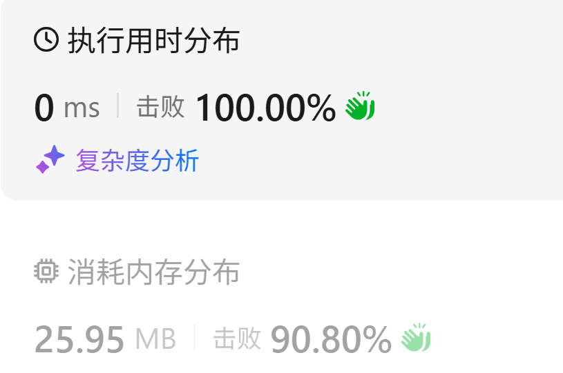 由上可知,该解法通过: (时间复杂度:O(N),空间复杂度:O(N))