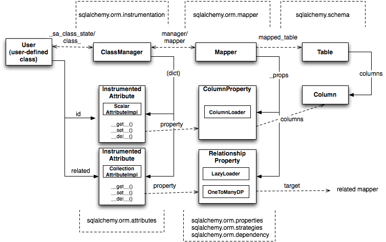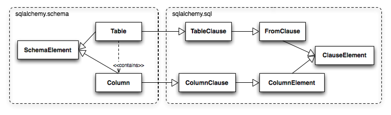 The Core/ORM separation has always been SQLAlchemy's most defining feature, and it has both pros and cons. The explicit Core present in SQLAlchemy leads the ORM to relate database-mapped class attributes to a structure known as a Table