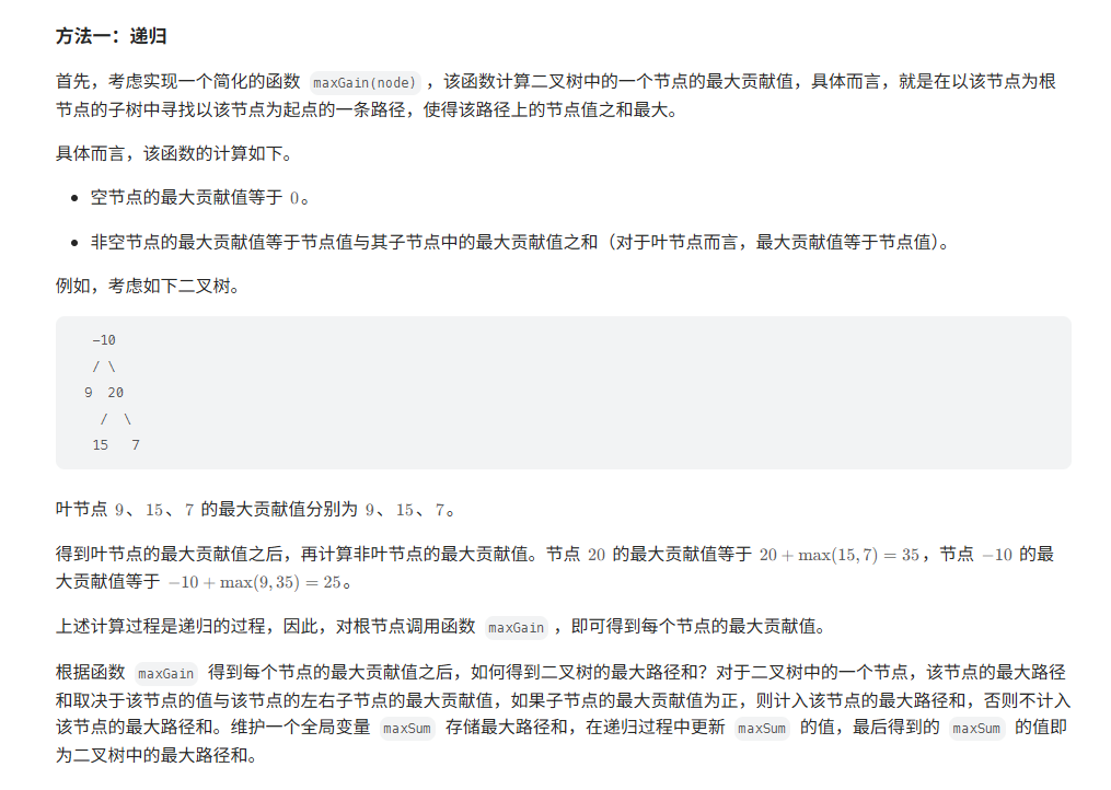 // 节点的最大路径和取决于该节点的值与该节点的左右子节点的最大贡献值