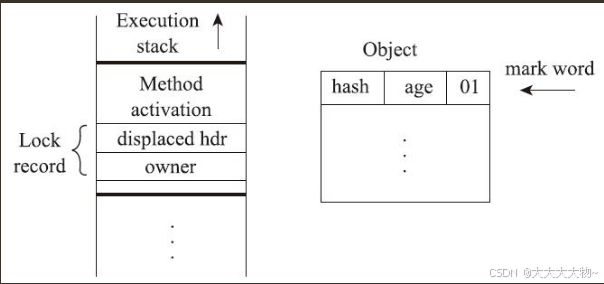 首先,在代码即将进入同步块时,如果锁标志位为01(未锁定),那么虚拟机首先将在当前线程的栈帧中建立一个Lock Record(锁记录)空间,并存储锁对象目前的Mark Word拷贝。