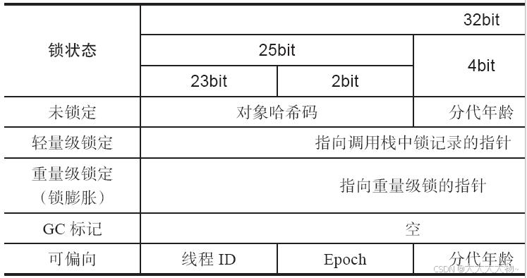 线程第一次获取锁对象的时候,虚拟机会讲锁标志位设置为01(轻量级锁),同时把偏向模式设置为1(偏向模式)