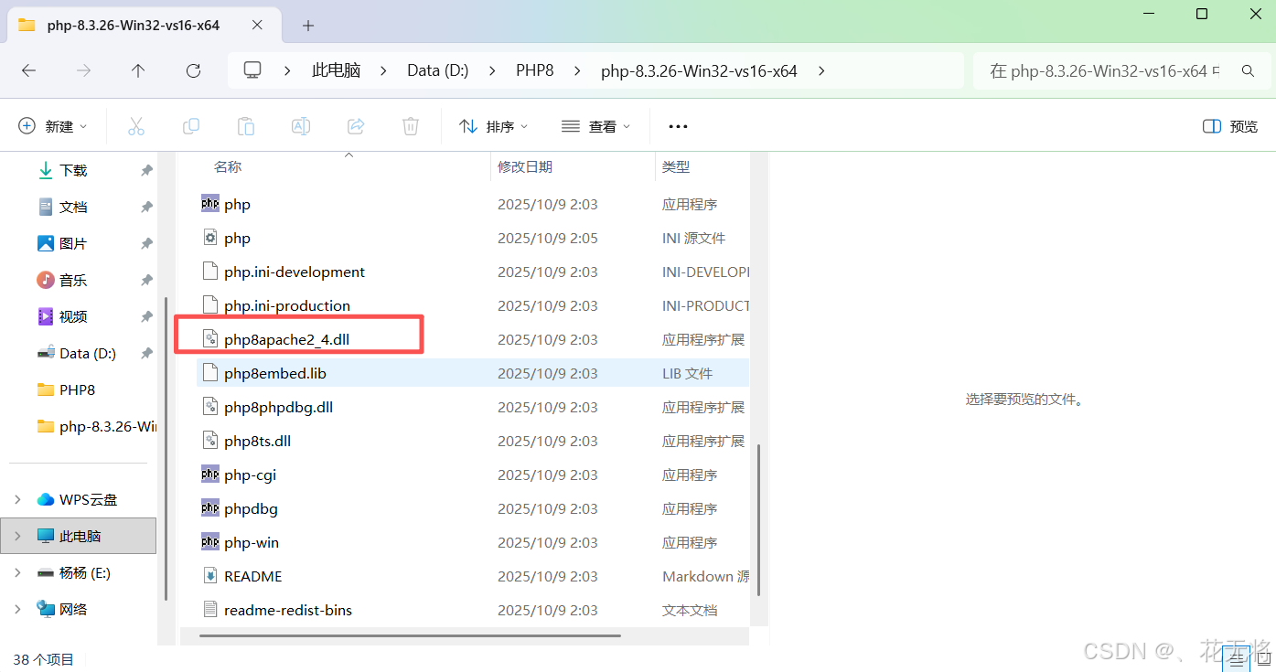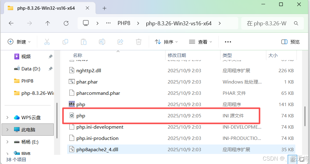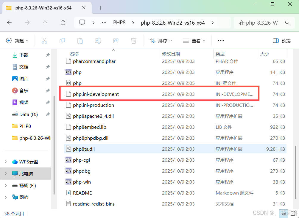 最后复制回刚创建的 php-8.3.26-Win32-vs16-x64 文件夹里。