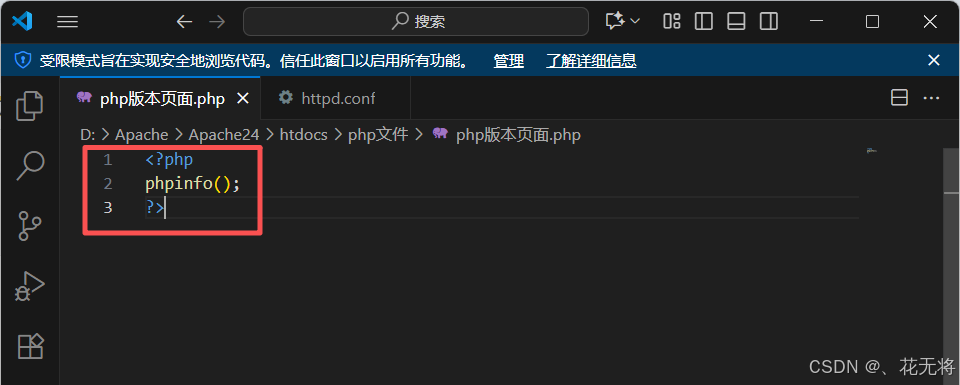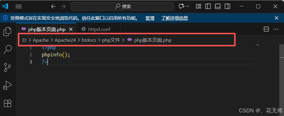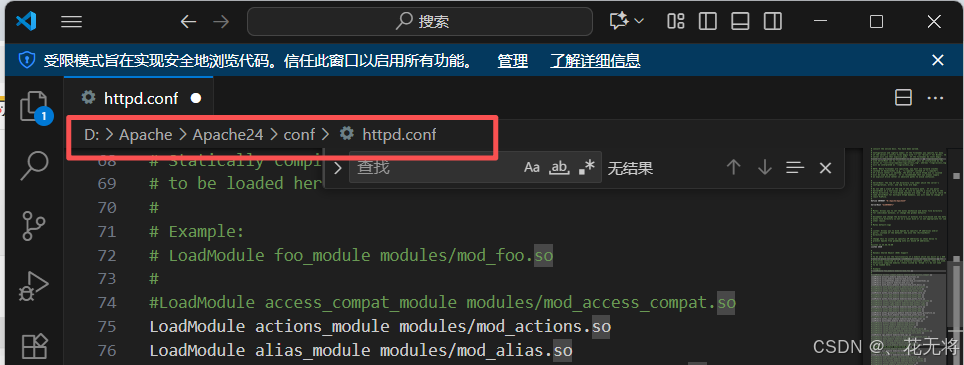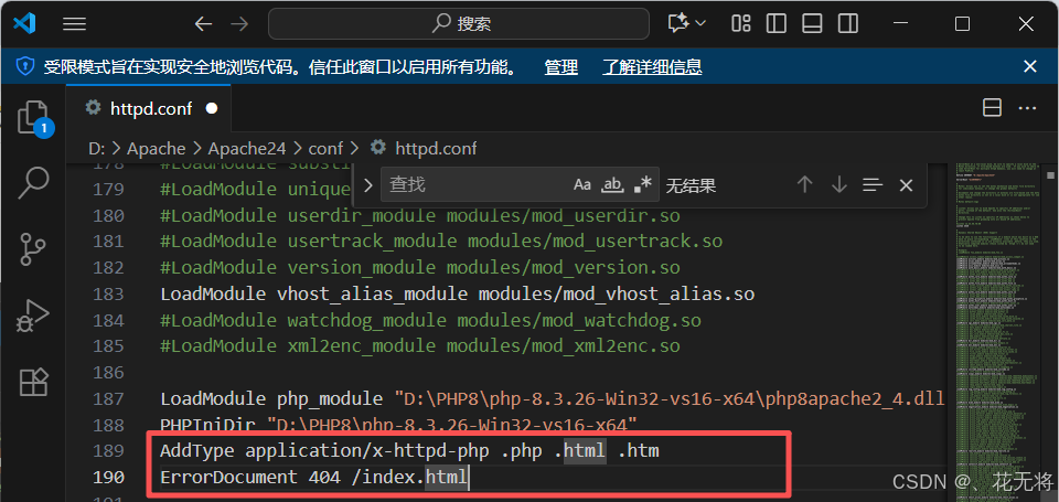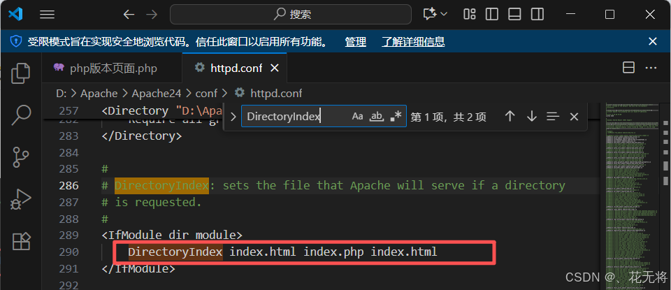第一,找到 apache 服务器中 httpd.conf 文件并打开。