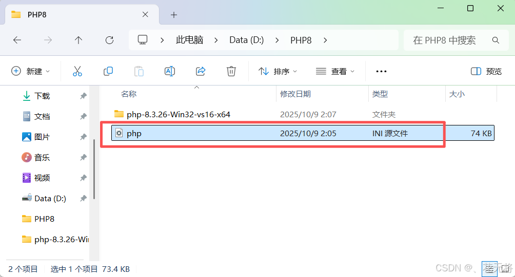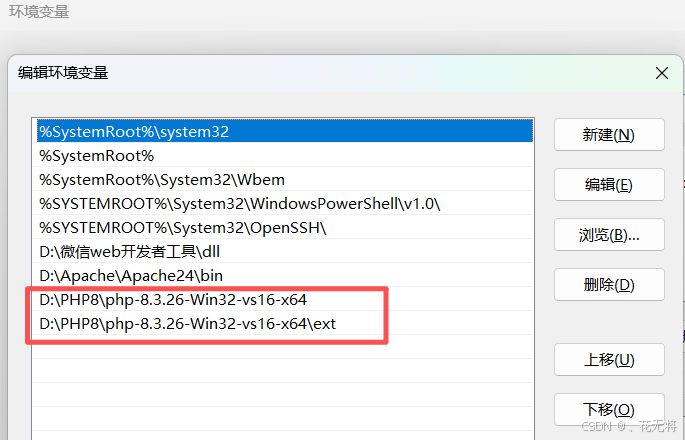 粘贴:PHPIniDir "D:\PHP8\php-8.3.26-Win32-vs16-x64"